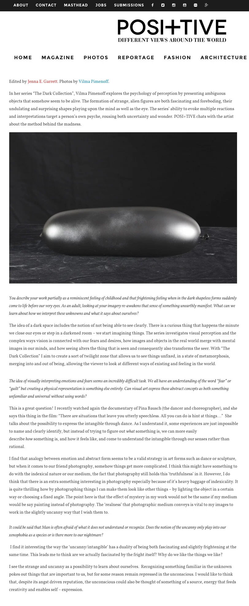 l’Express Styles, l’Inspiration: Beaute plastique, le travail de Vilma Pimenoff (2016)